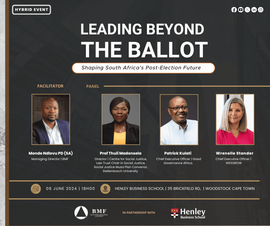 Join us for “Leading Beyond the Ballot: Shaping South Africa’s Post-Election Future.” This essential event will dive into the implications of coalition governments and what they mean for our nation’s future.